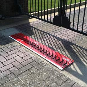 If you have never used a traffic spike, this device limits traffic in one direction. The spikes sink when a vehicle enters, but if they try to exit the same way, they will slice through tires and cause significant damage. This is a great way to make sure cars do not try to exit the wrong way. Usually, when using traffic spikes, you may need to set up a warning sign and speed bump to let others know that you are using a traffic spike on your property. There are two different types of traffic spikes. One is surface-mounted, while the other is an in-ground traffic spike.
